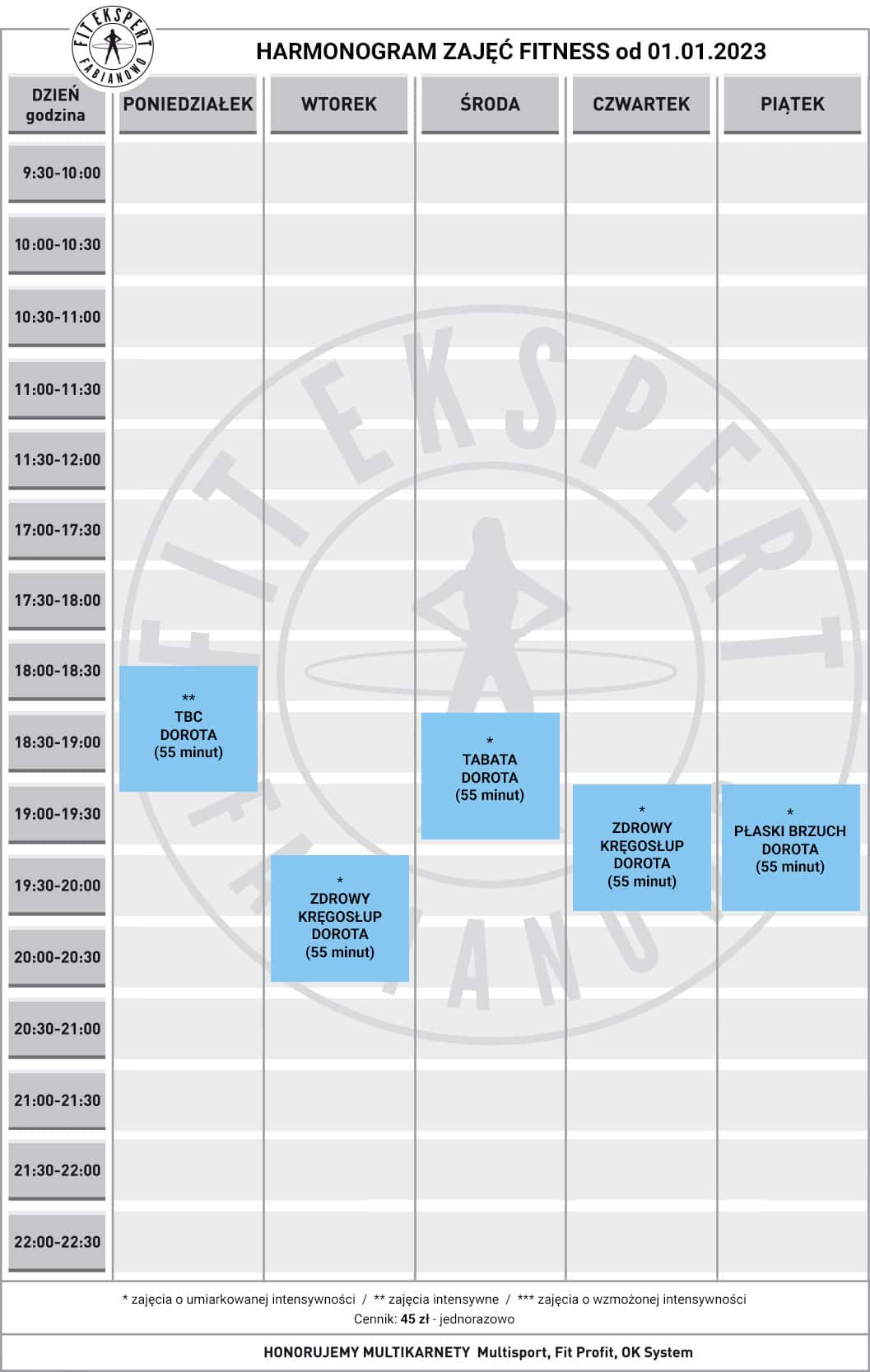 Harmonogram zajęć Fitness